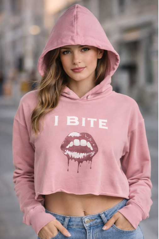 I Bite Crop Top Hoodie